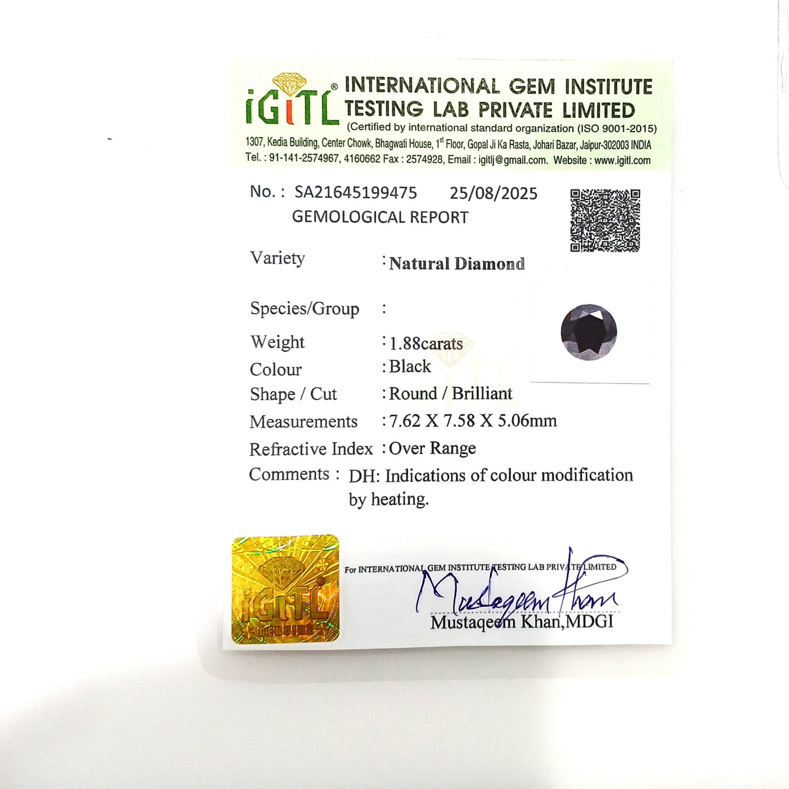• Weight: 1,88ct. (Carat)  1 pcs.