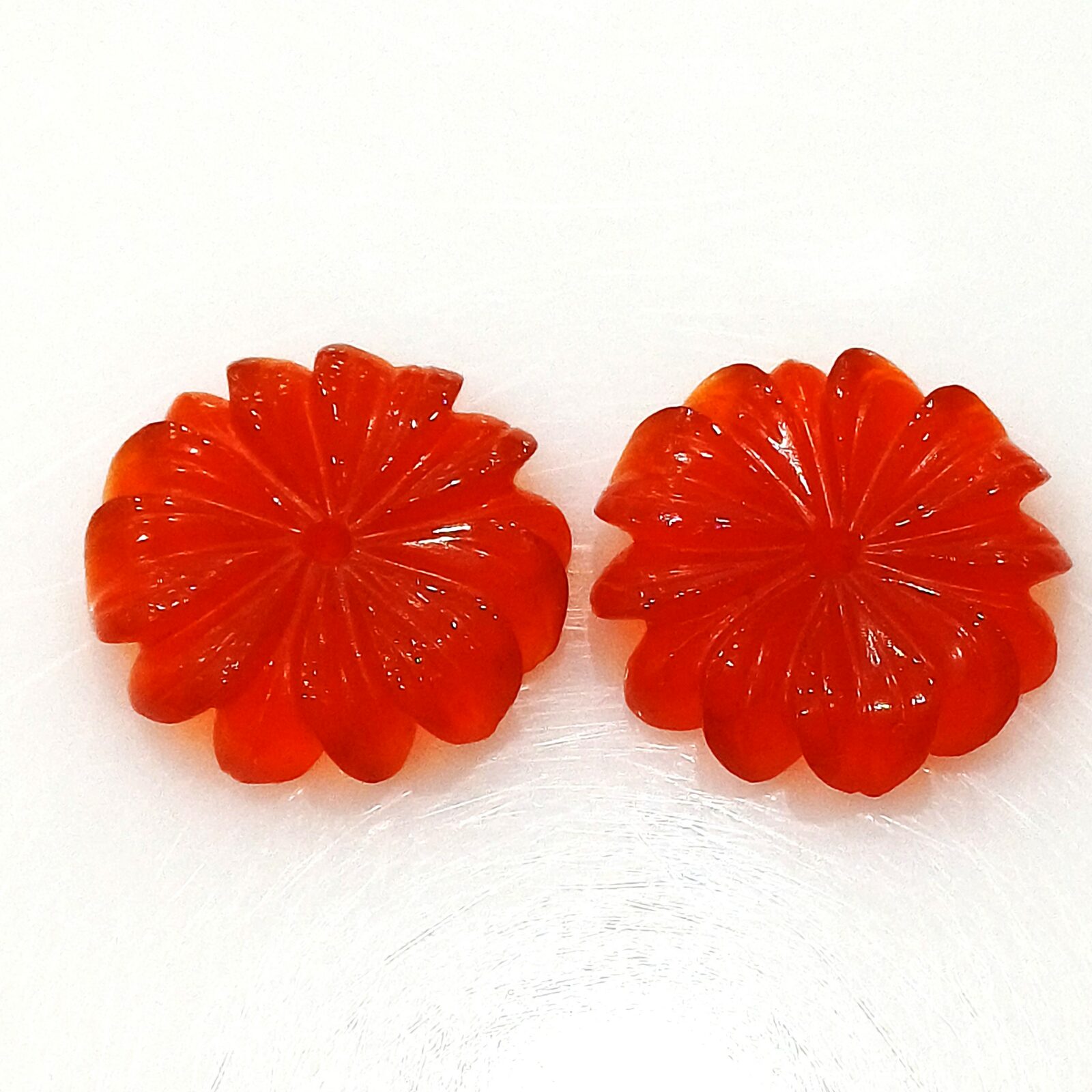 Natural Carnelion carving Flower mix cut with drill 2 pcs. PAIR – 20,0×20,0x4,5mm 25,50ct. (00700)