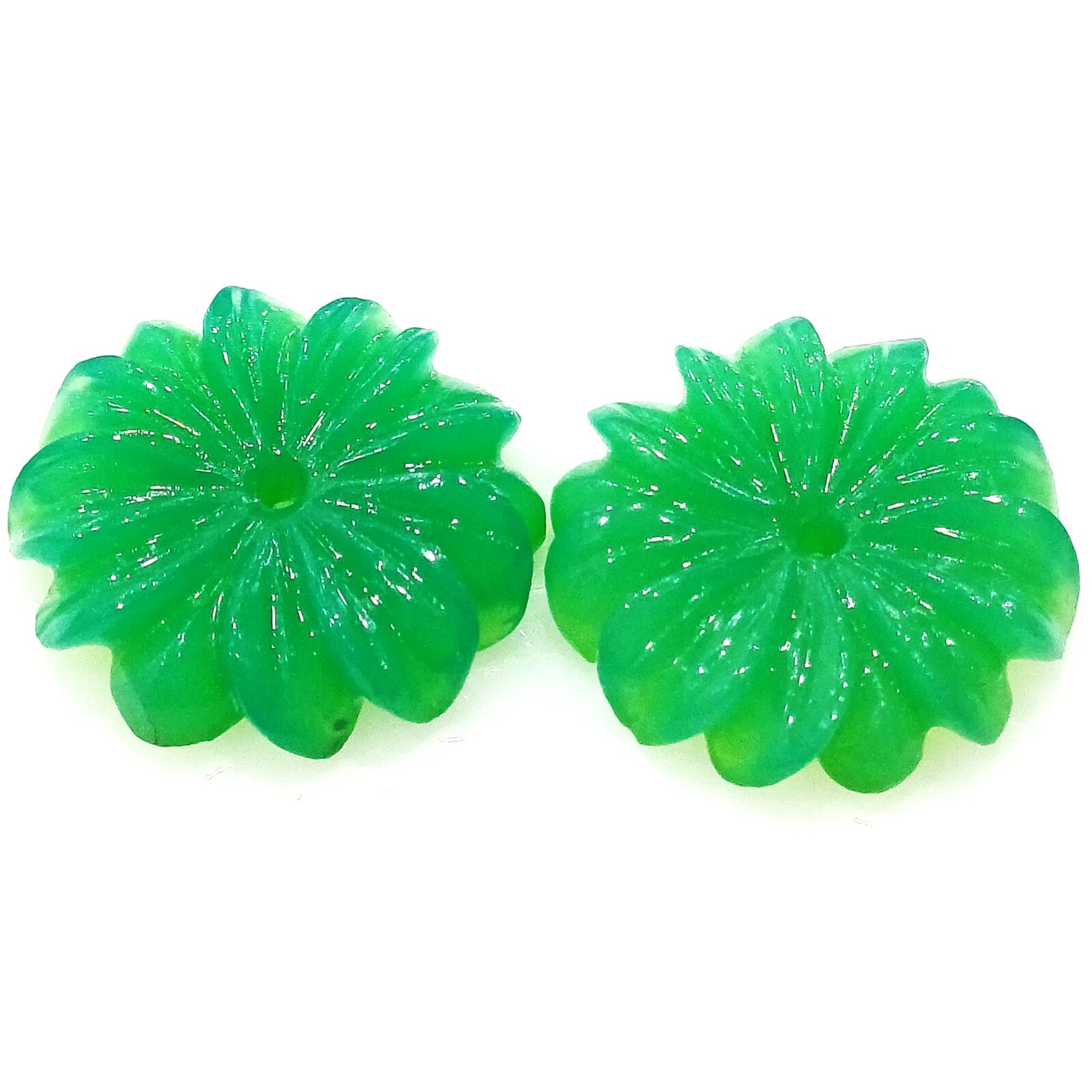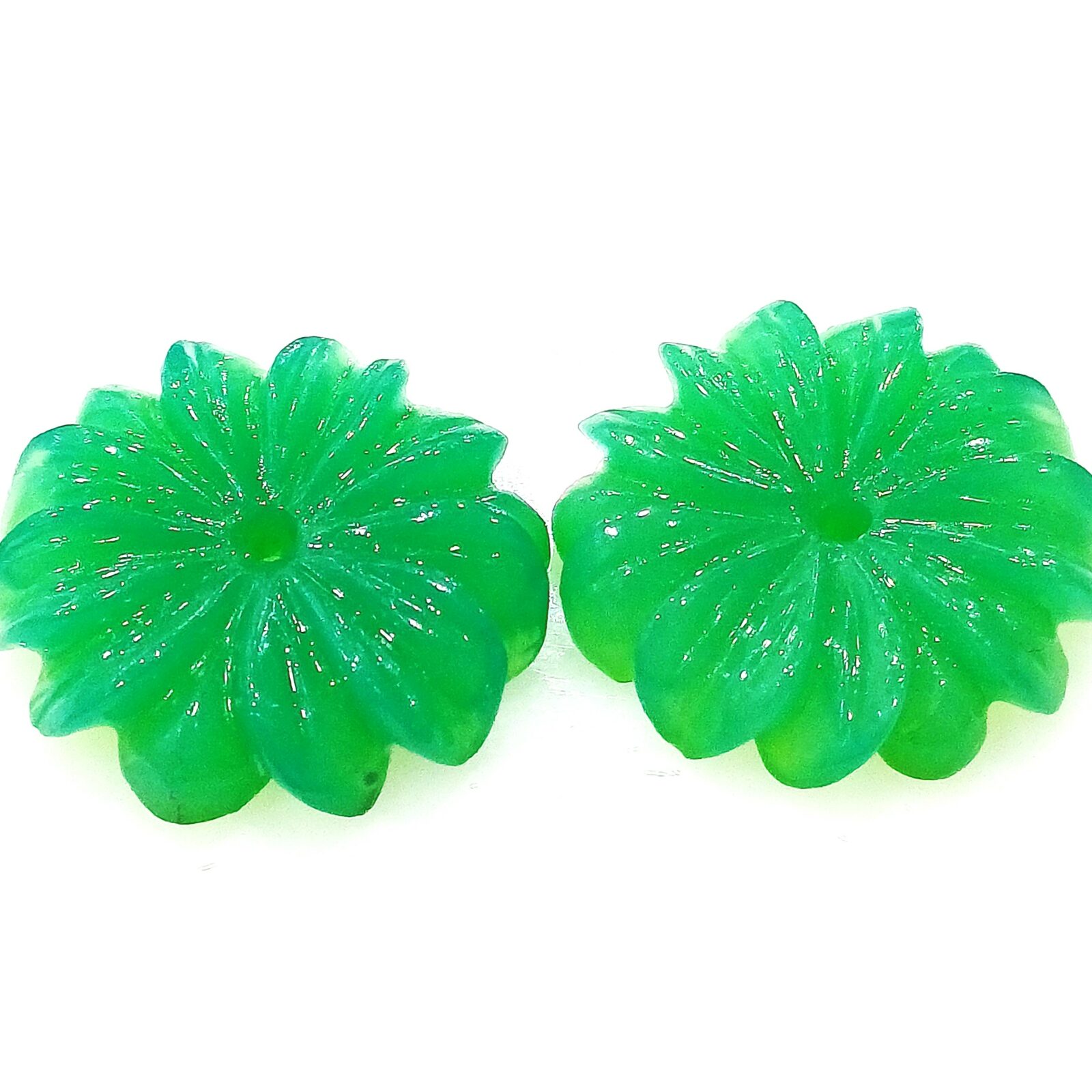 Home Gemstones Chrysoprass Natural Chrysopras pair carving flower mix cut 2 pcs.- 19,50×19,50×5,0mm 25,15ct. (80600)