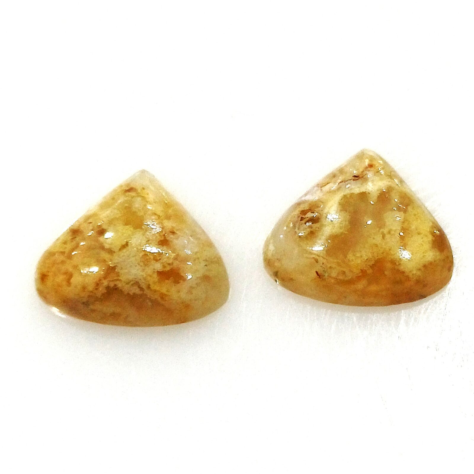 Natural Coral fossil half cushion with halfdrill shape cabochon mix cut 2 pcs. Pair – 21,60×16,50×5,20mm 27,60ct. (80140)