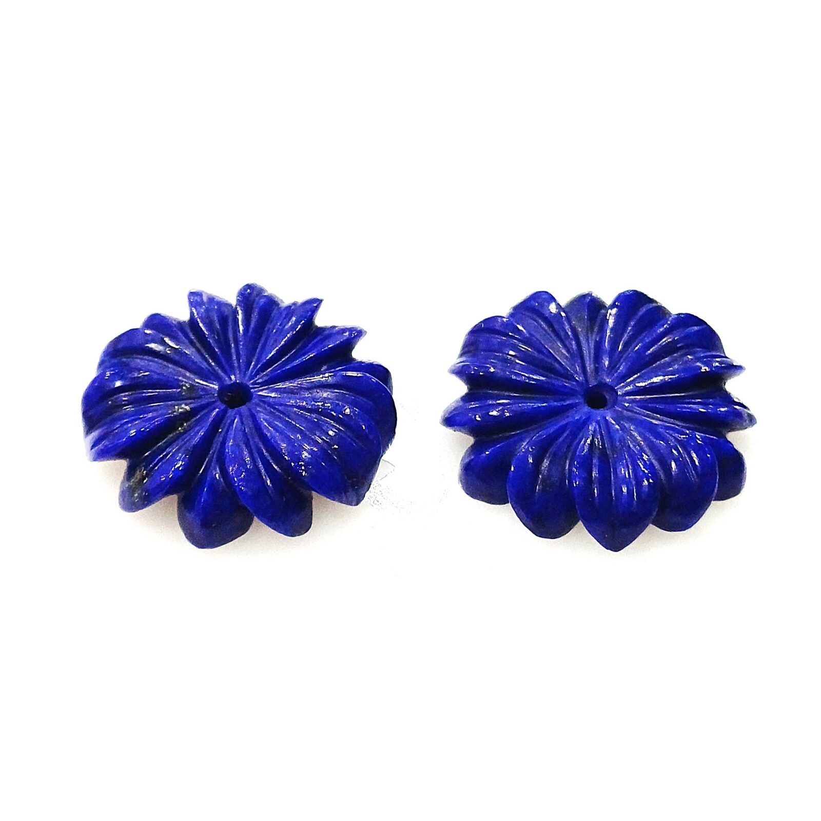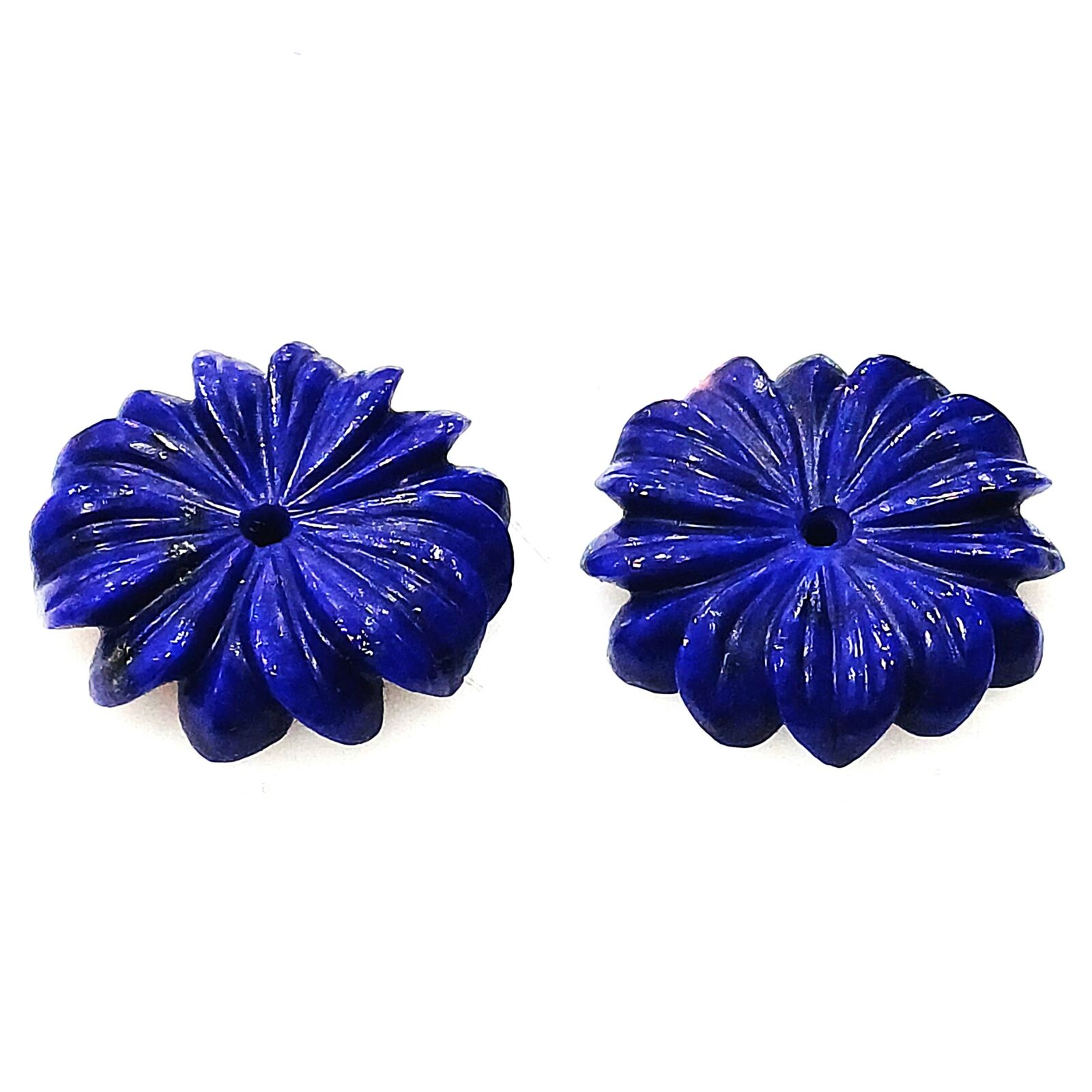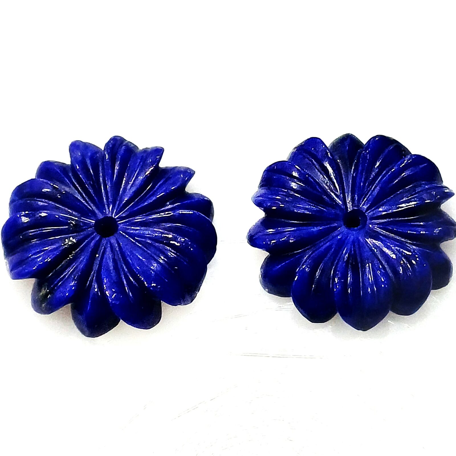 Home Gemstones Lapislazuli Natural Lapis Lazulli carving Flower mix cut with drill 2 pcs.- 20,0×20,0x4,5mm 28,10ct. (00400)