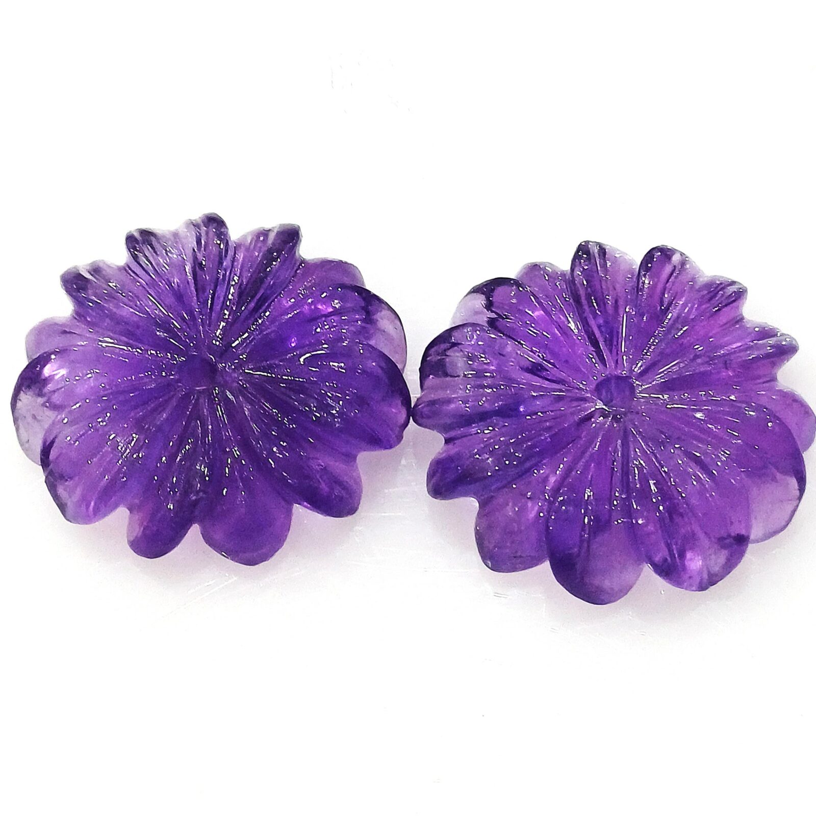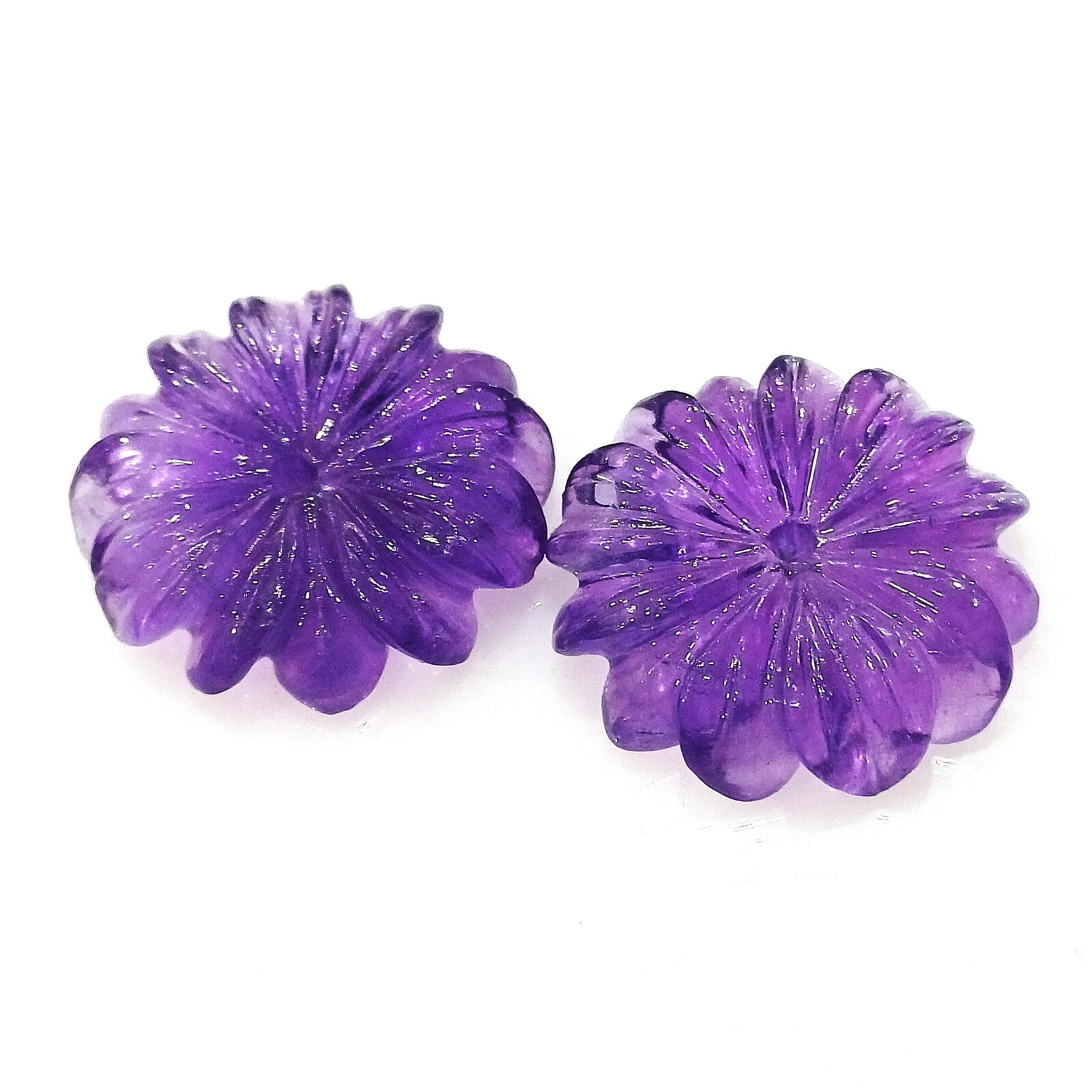 Home Gemstones Pair Gemstones Natural Amethyste pair carving flower mix cut 2 pcs.- 19,50×19,50×5,0mm 25,70ct. (80585)