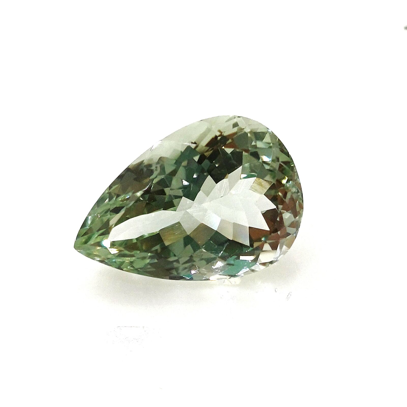 Home Gemstones Prasiolithe Natural Prasiolite Pear shape brilliant mix cut 1 pcs.- 23,26×16.10×11.67mm 22,82ct. (80970)