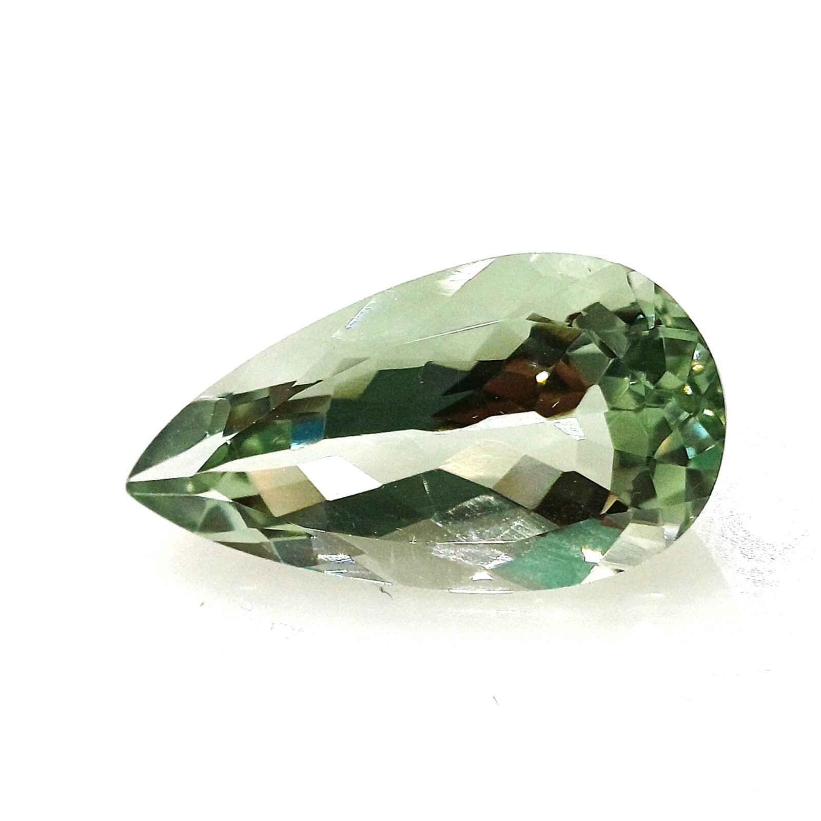 Home Gemstones Prasiolithe Natural Prasiolite Pear shape brilliant mix cut 1 pcs.- 23,55×12,64×8,73mm 13,25ct. (80974)