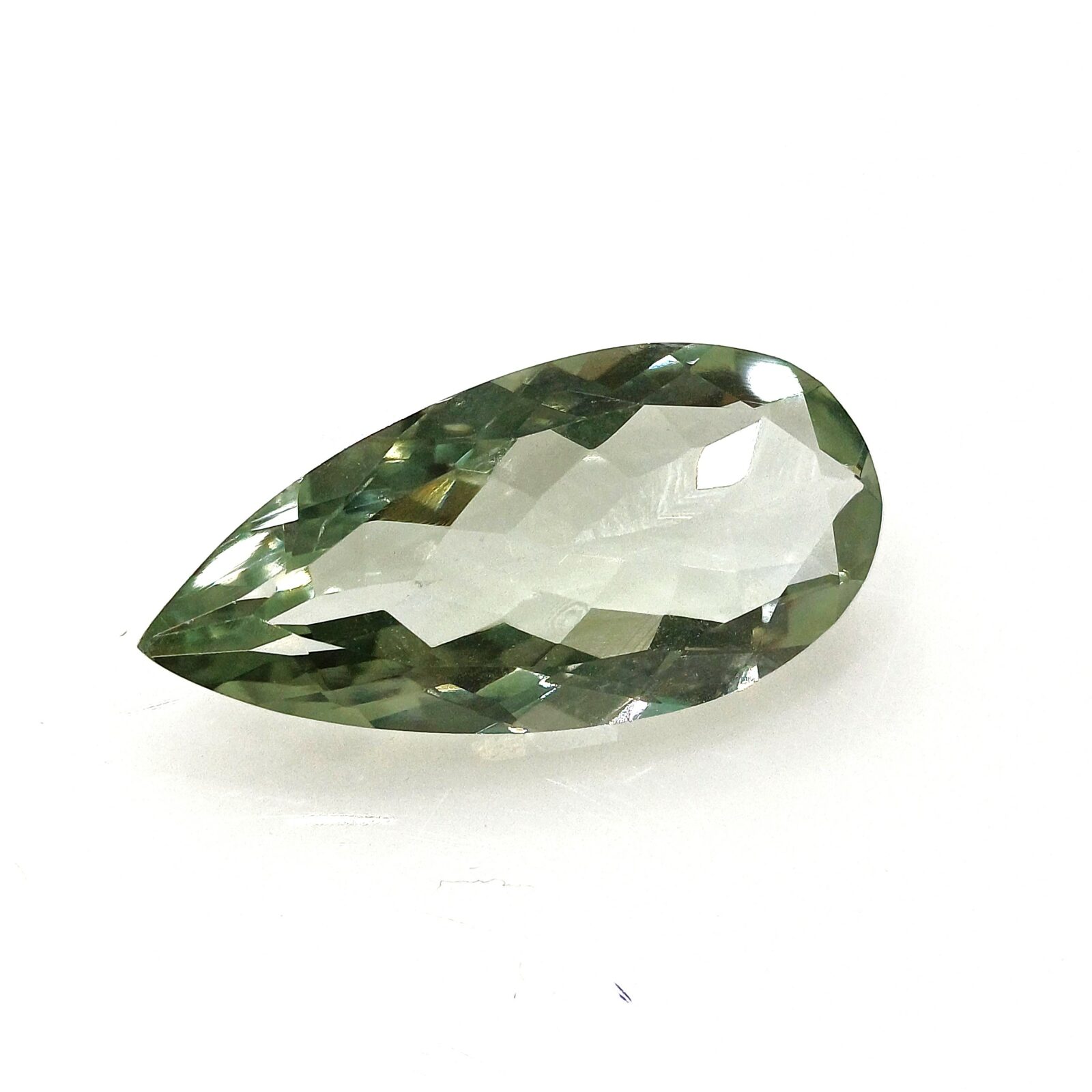 Home Gemstones Prasiolithe Natural Prasiolite Pear shape brilliant mix cut 1 pcs.- 23,66×11,34×6,83mm 10,21ct. (80972)