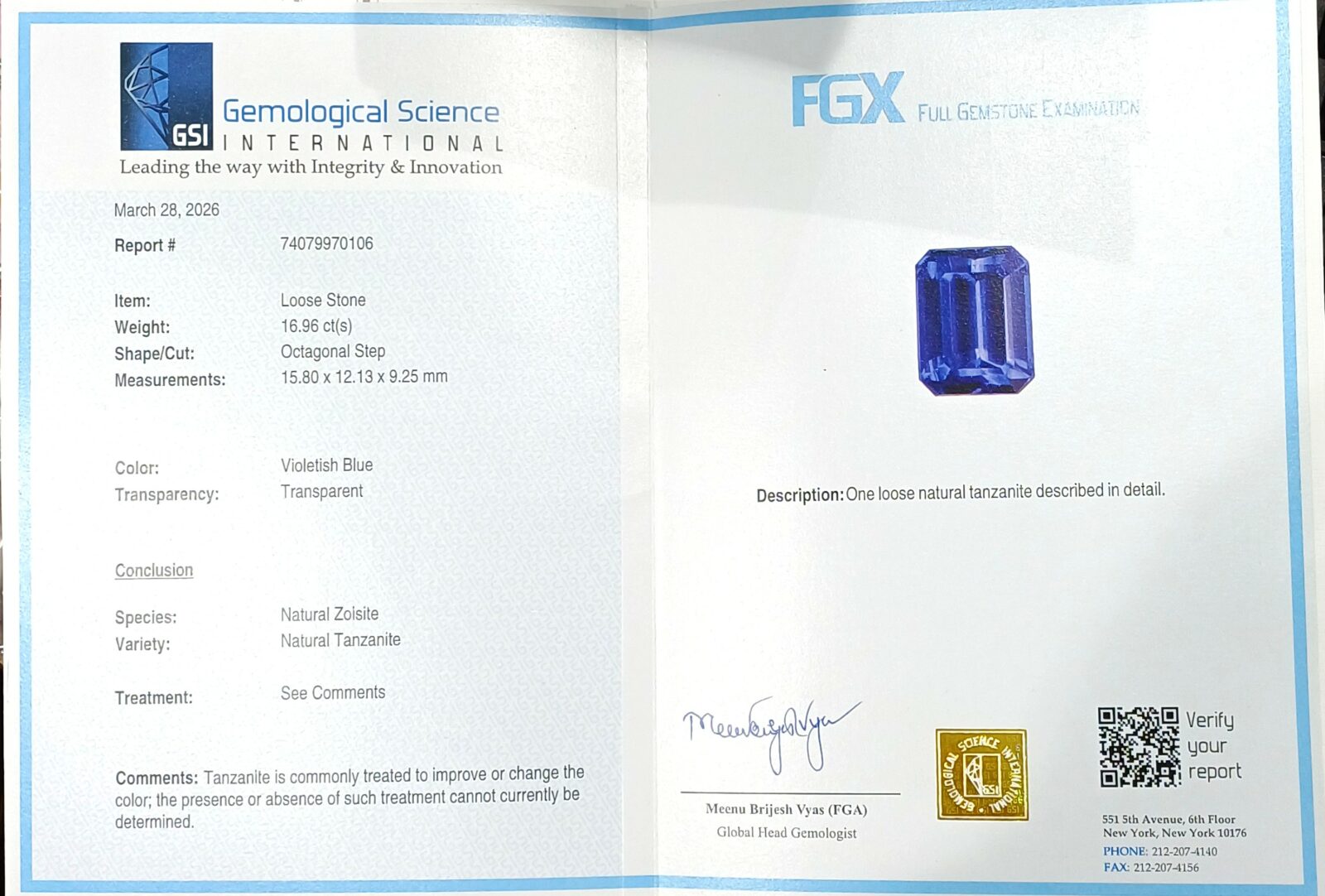 Natural Tanzanite AAA+ GSI octagon shape step mix cut 1 pcs.- 15,80×12,13×9,25mm 16,96ct. (80809)
