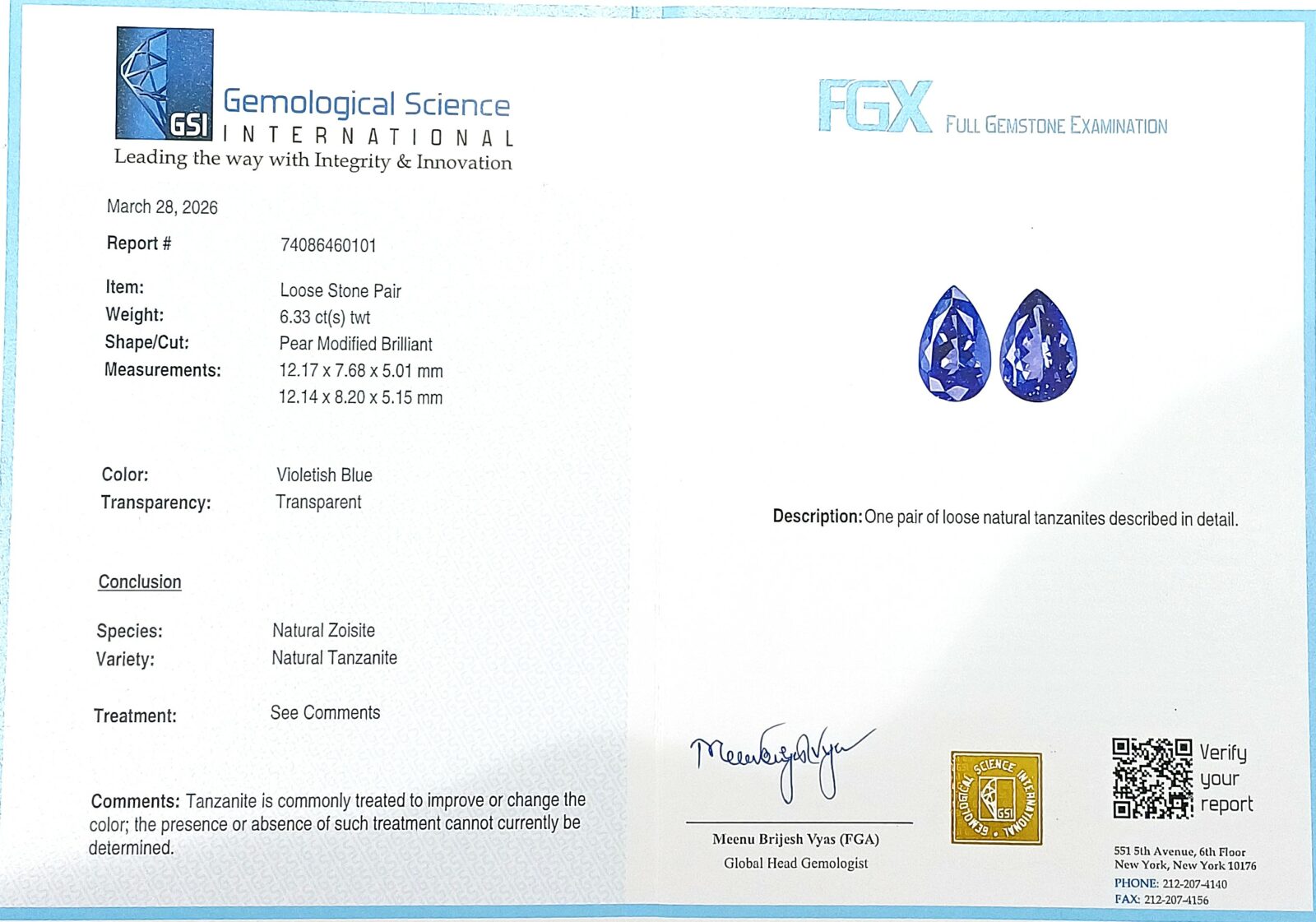 Natural Tanzanite PAIR pear shape brilliant mix cut 2pcs. – 12,0×8,0x5,0mm 6,33ct. (80985)