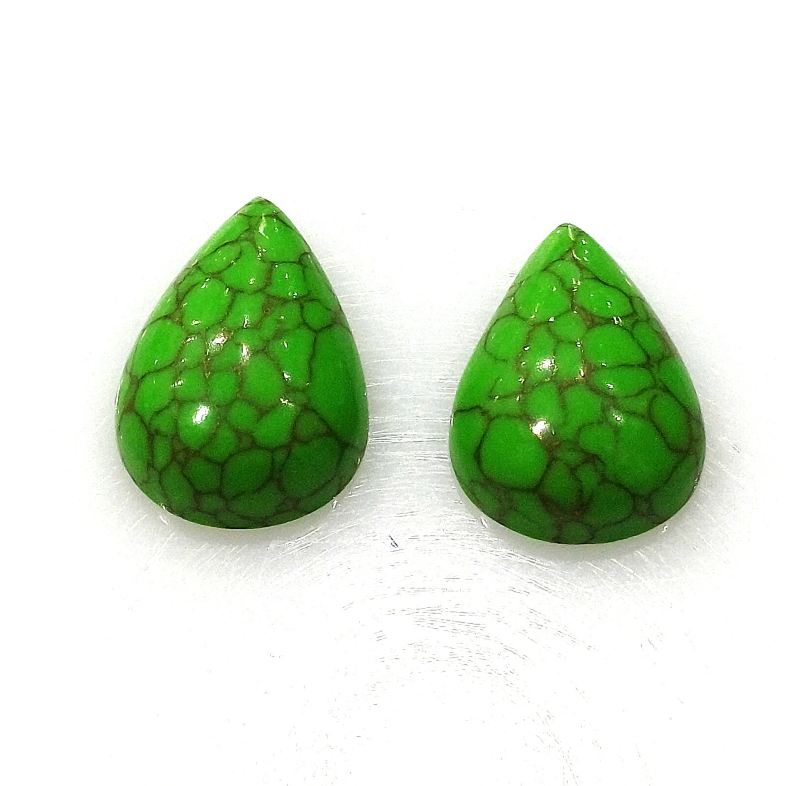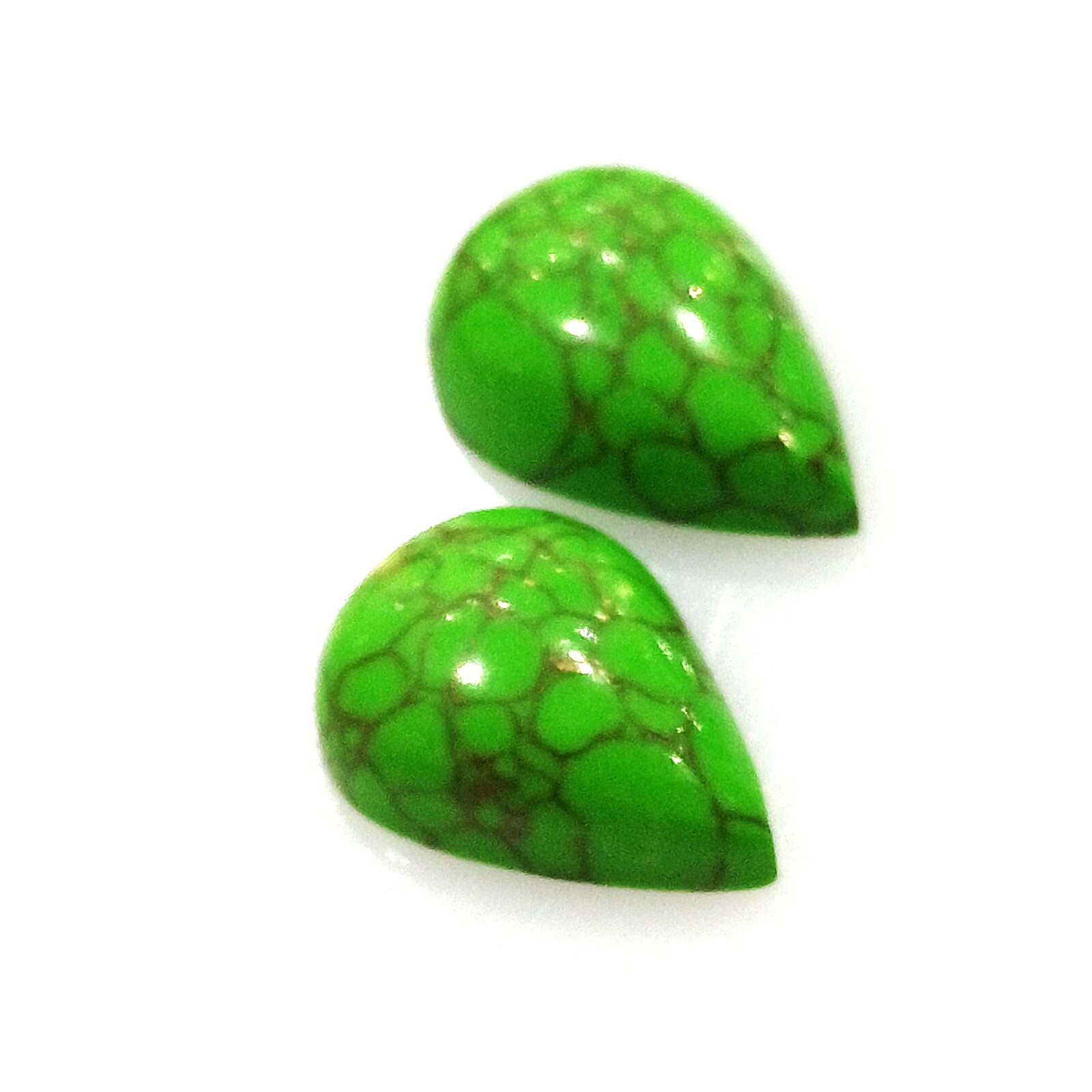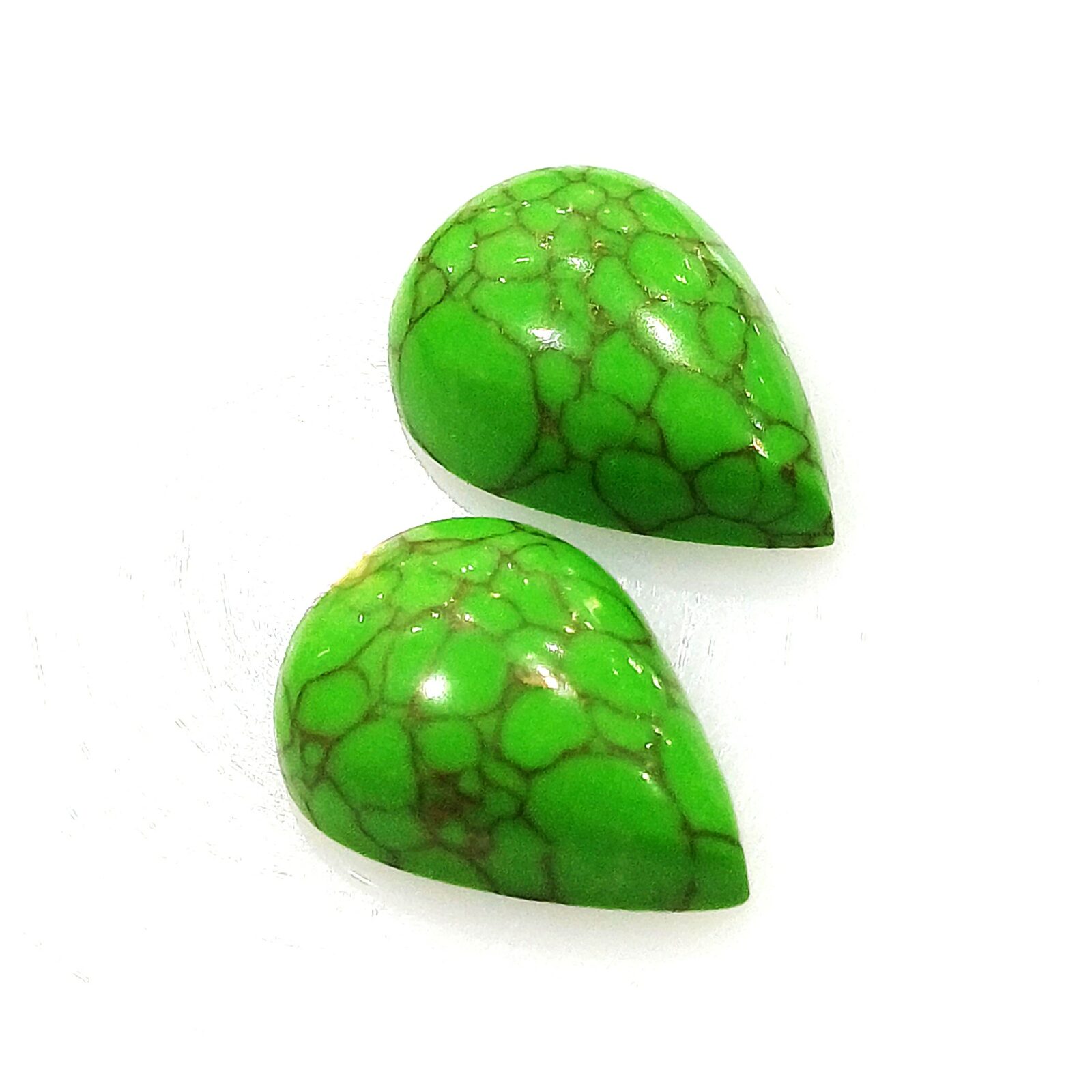 Home Gemstones Tourquise Natural Tourquise Manschurei PAIR pear shape Cabochon mix cut 2 pcs.- 15,40×11,0x5,20mm 11,02ct. (80982)
