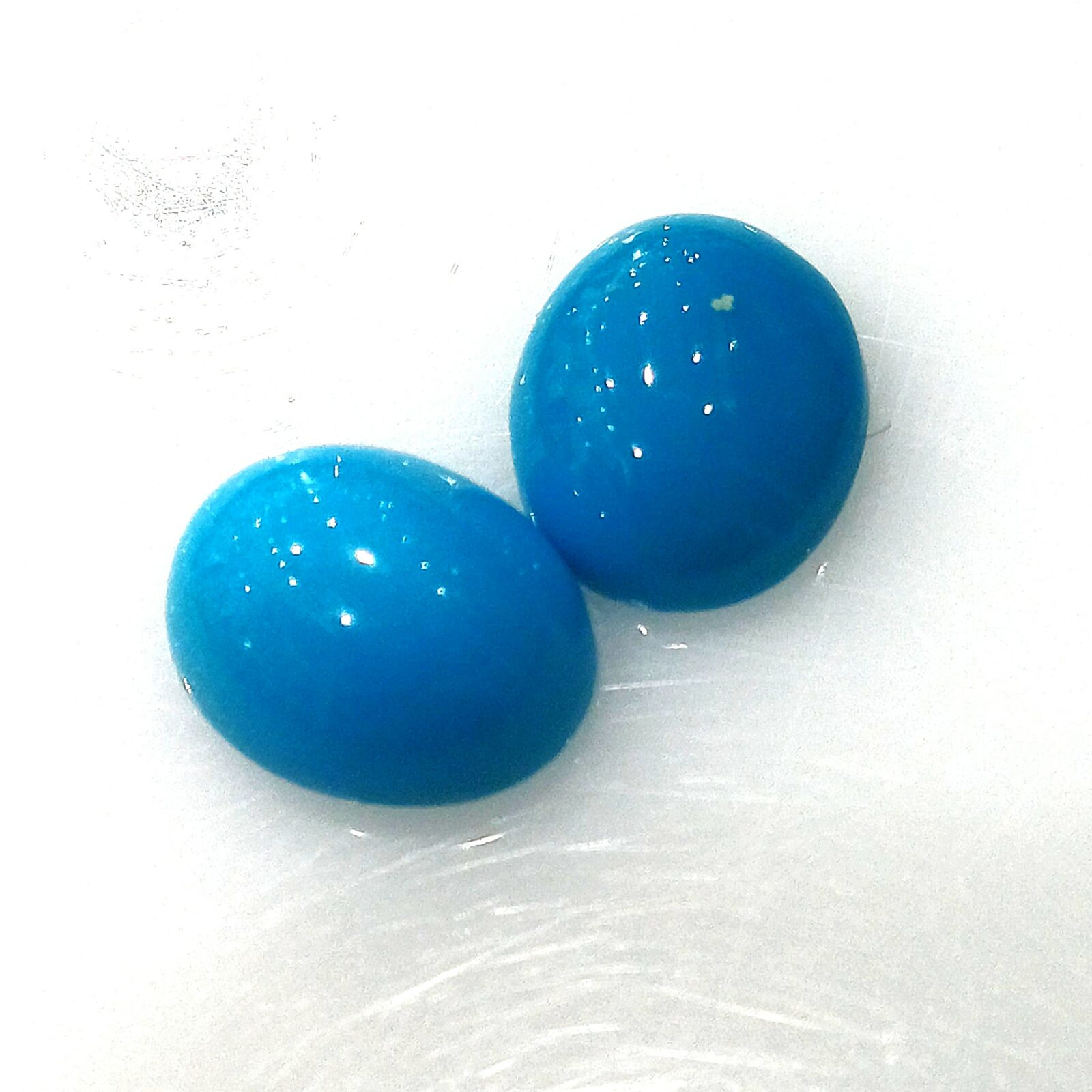 Natural Turquoise PAIR oval shape cabochon mix cut 2 pcs. – 13,80×10,0x5,10mm 10,55ct. (80438)