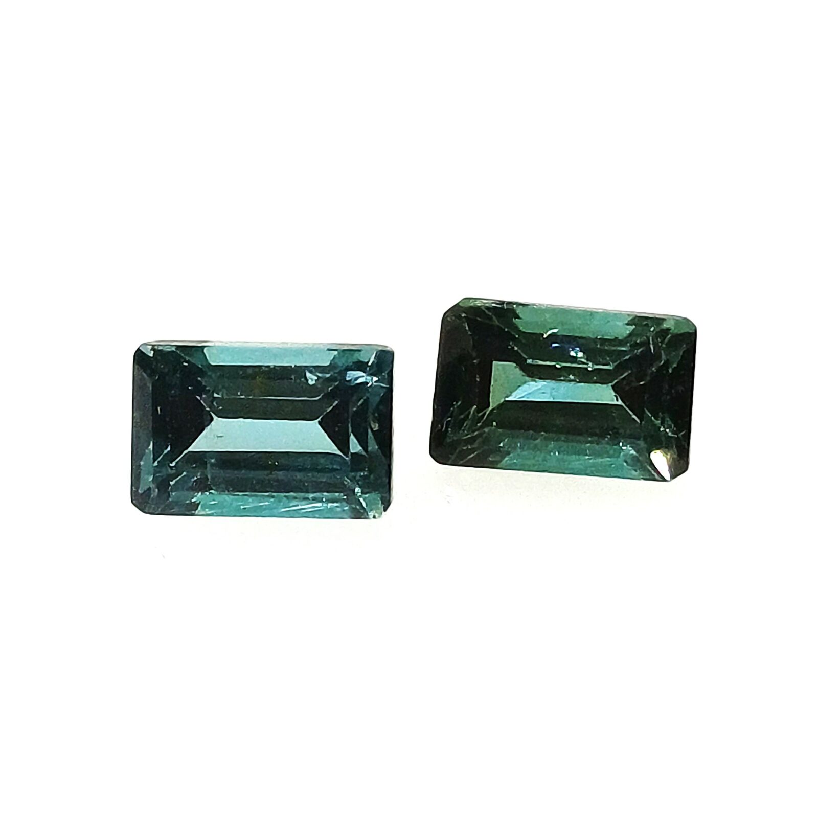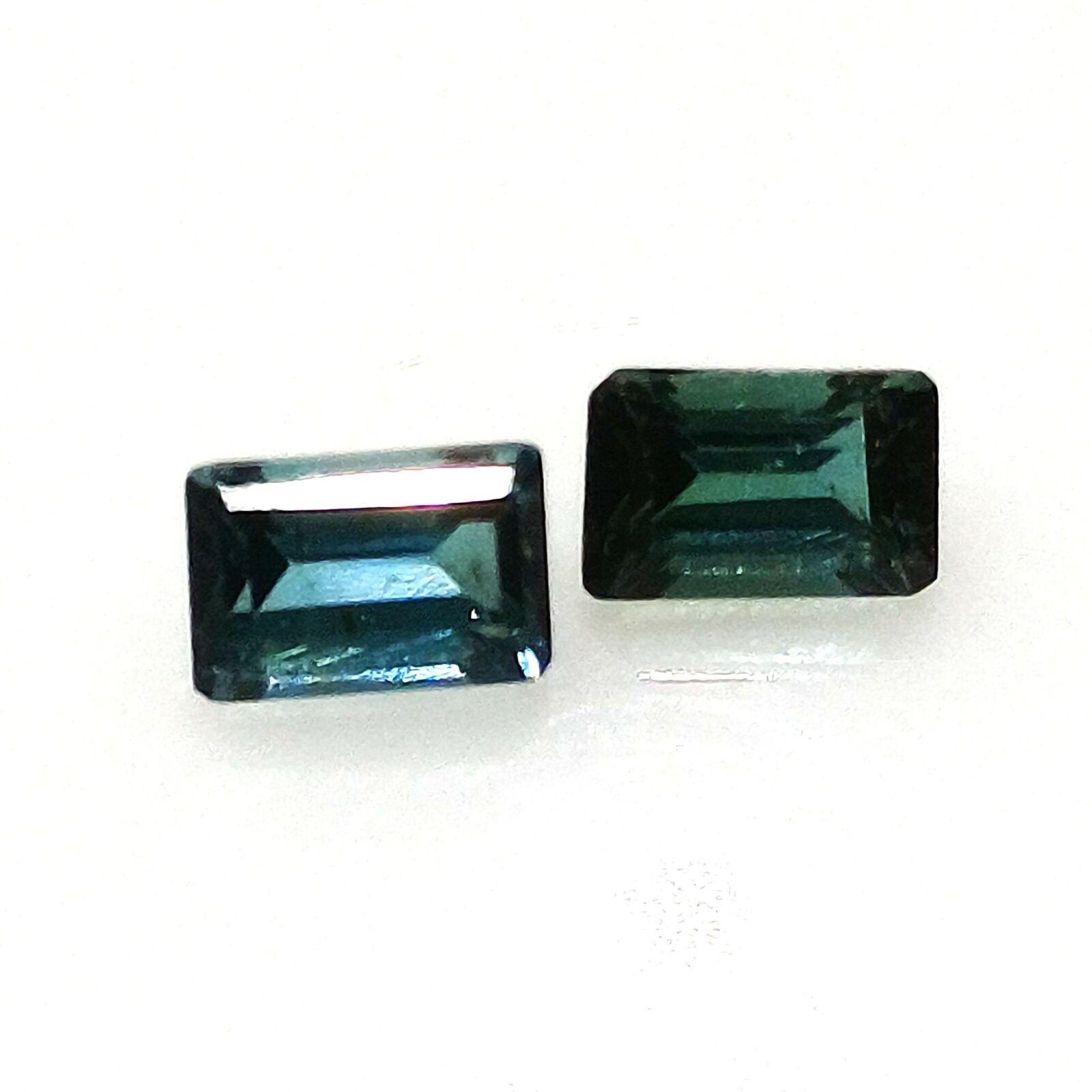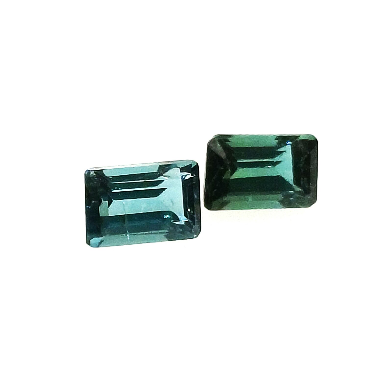 Home Gemstones Turmaline Natural Turmaline green blue PAIR octagon step mix cut 2 pcs.- 6,0×4,0x2,70mm 1,54ct. (00695)